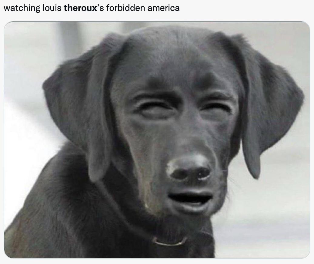 Of course, Theroux could have made the documentary more aggressive and maniacal – he could have played even scarier music. Like, he could have covered the whole documentary with a Blair Witch Project techno soundtrack.