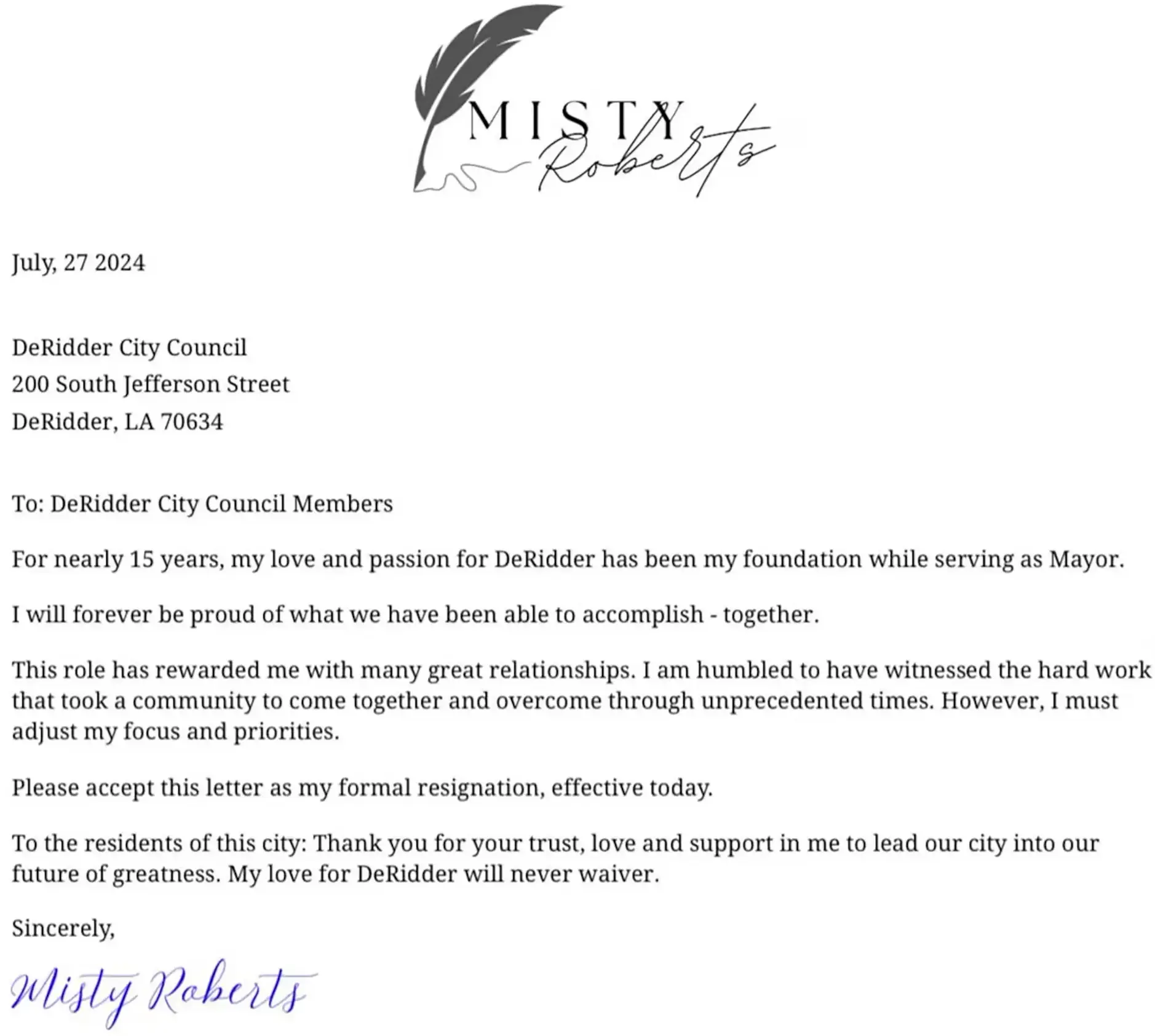 An investigation into the 42-year-old mayor, who was in her second term, was opened on July 26, after the Beauregard Parish Sheriff’s Office requested the state police look into a complaint against Roberts.