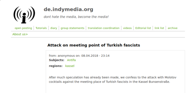 After much speculation has already been made, we confess to the attack with Molotov cocktails against the meeting place of Turkish fascists in the Kassel Bunsenstraße.
