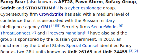 Most likely, Fancy Bear/APT28/STRONTIUM/wtvr is a CIA/Mossad hoax. Or it may have been completely invented by Crowdstrike. None of this alleged evidence has ever been made public.