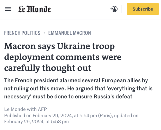 Previously: Macron Now Talking About Sending NATO Troops to the Ukraine
