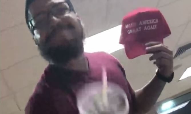“I support my President and if you don’t let’s have a conversation about it instead of ripping my hat off. I just think a conversation about politics is more productive for the entire whole rather than taking my hat and yelling subjective words to me,” he said.