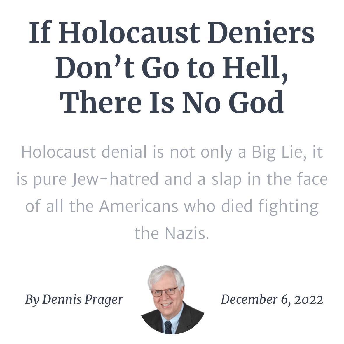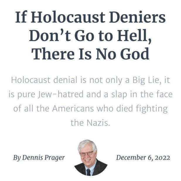 In “If Holocaust Deniers Don’t Go to Hell, There is No God,” bulbous and bloated Jew Prager writes: