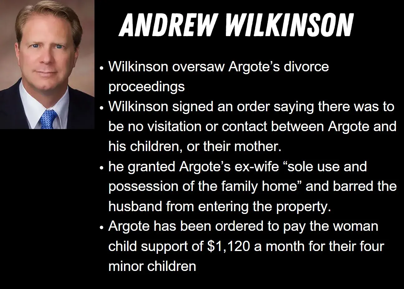 Wilkinson signed an order saying there was to be no visitation or contact between Argote and his four children, or their mother, Eugenia Argote, according to the partial judgment in the divorce case cited by The Herald-Mail.