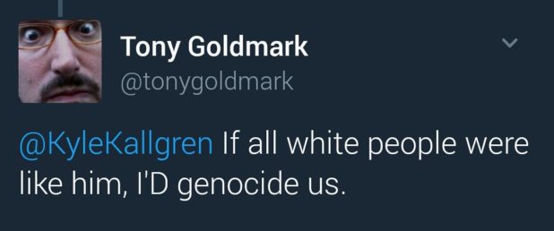 “Hello, my fellow white people. We should exterminate ourselves.”