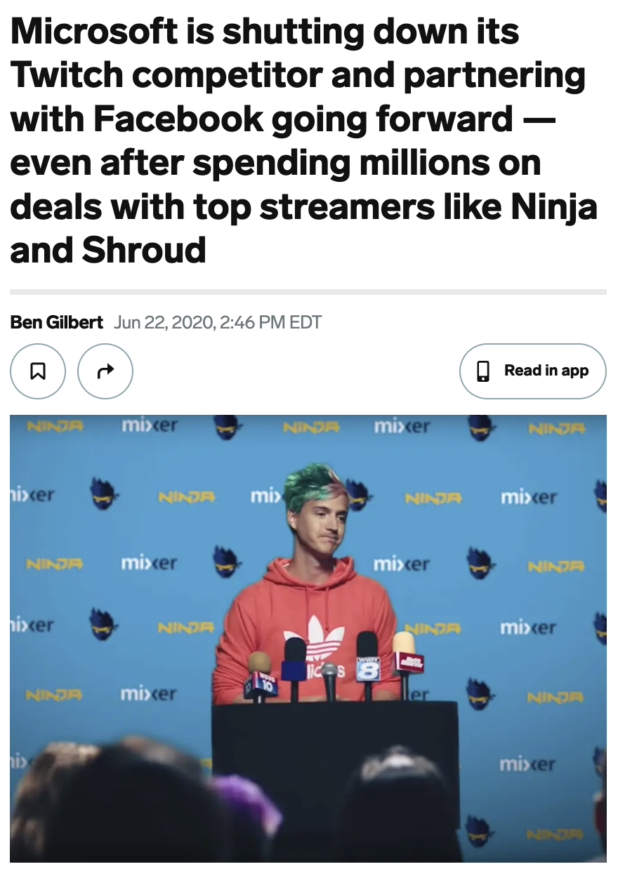 When Microsoft tried to compete with Twitch in the streaming space – a space that is not a natural monopoly and wouldn’t ever really be a monopoly in the way Twitter is a natural monopoly – Microsoft spent a bunch of money hiring people like Ninja for exclusive deals.