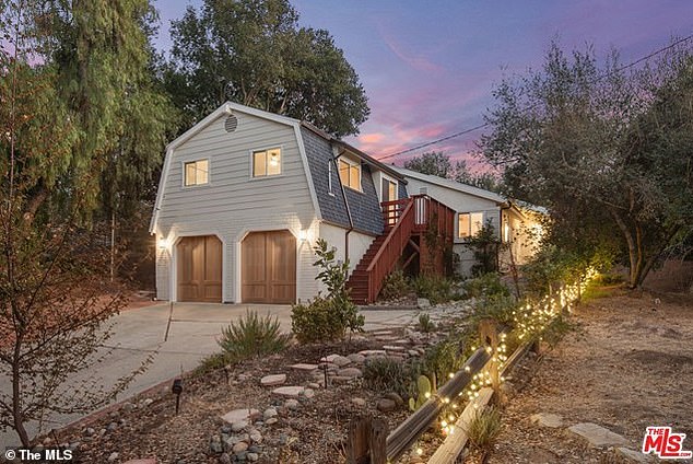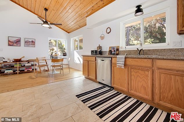 The realtors write that the large back yard is ‘ideal for entertaining or quietly contemplating cross-canyon vistas framed by mature trees’.