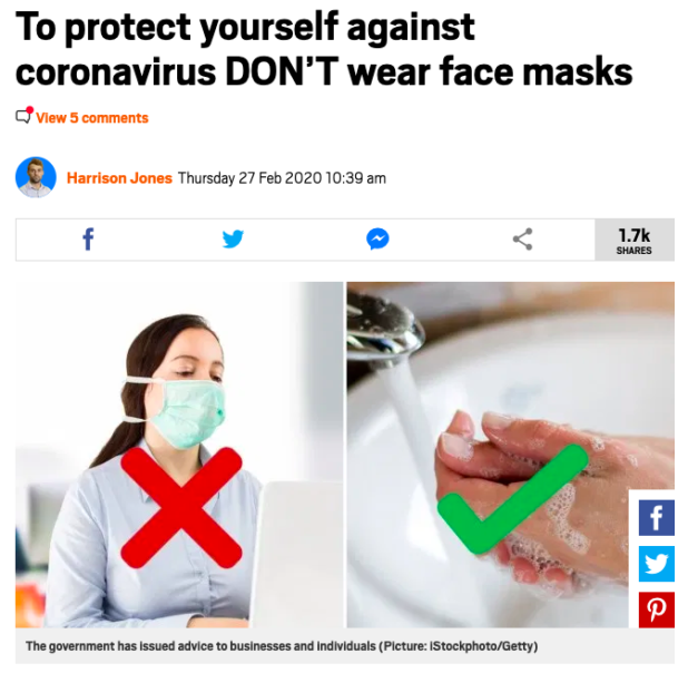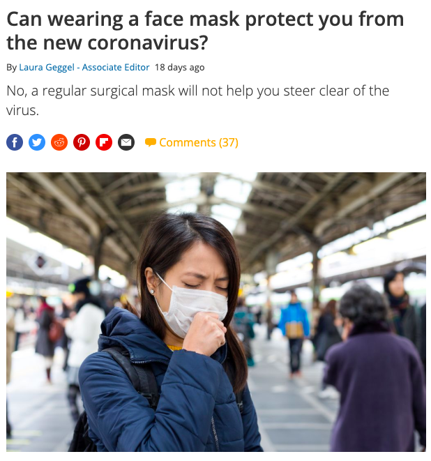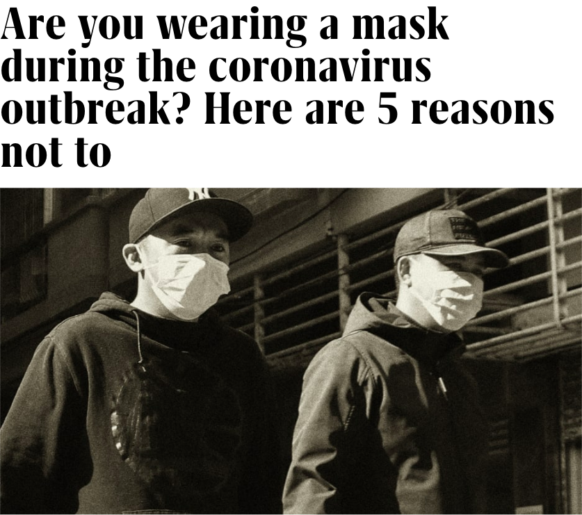 Of all the stupid, dumb, retarded shit that has been said during this Coronavirus situation, “masks won’t help” has to be the ultimate dumb statement.