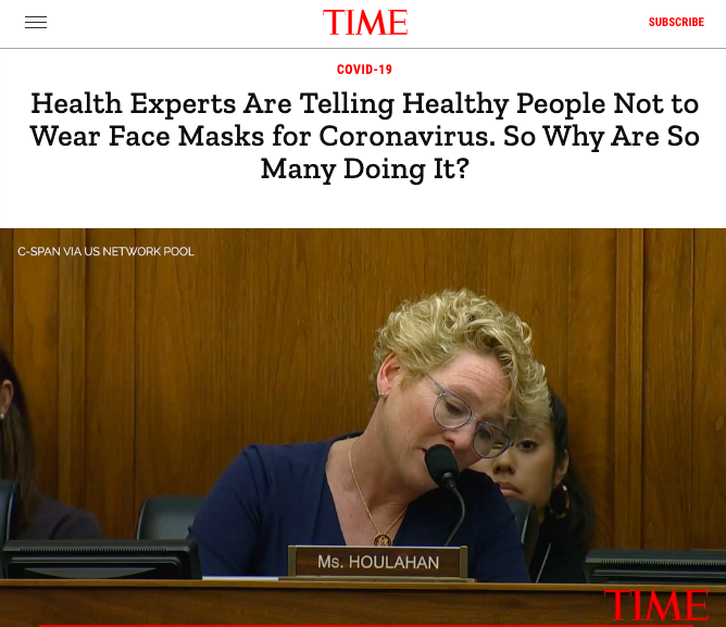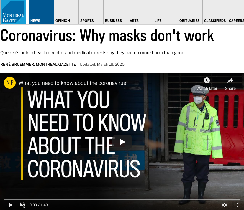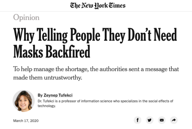 Well, their official excuse is that they didn’t want to run out of masks. That is the official explanation that the New York Times itself is giving for this kook claim that blocking 90+% of incoming particulates, and virtually 100% of outgoing particulates, was not a good idea in the midst of a respiratory viral pandemic.