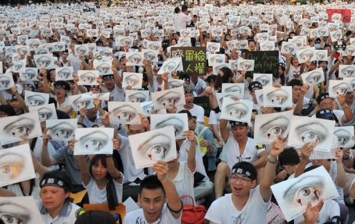 It was the second mass protest since Corporal Hung Chung-chiu died of heatstroke on July 4 — apparently after being forced to exercise excessively as punishment for taking a smartphone onto his base — just three days before the end of his compulsory year-long military service.