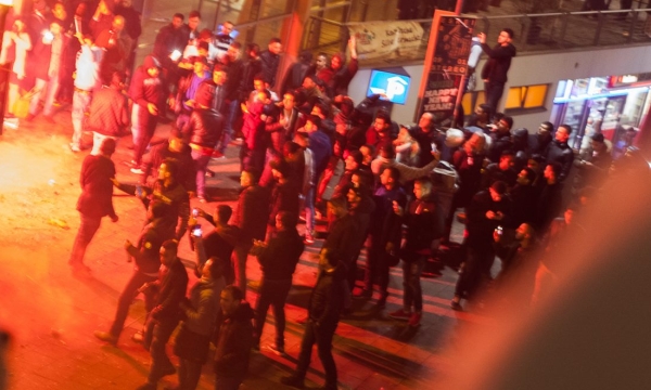 Nightclub bouncers phoned the police when the mob became aggressive and started throwing fireworks, but before the police could arrive, the mob broke into the nightclub and then started to grope the groins and chests of female visitors.