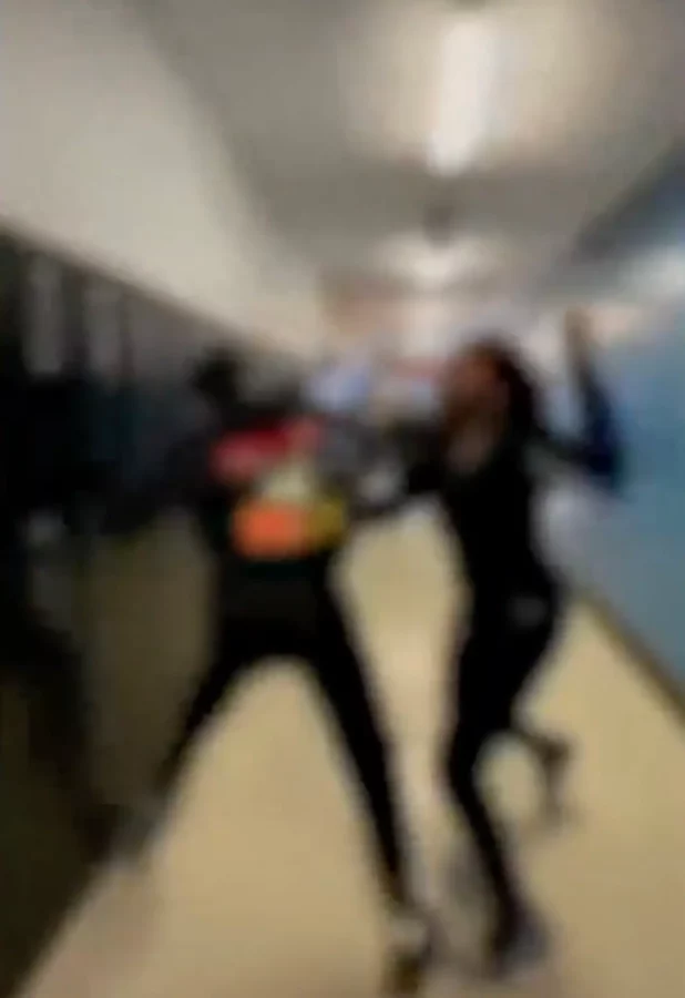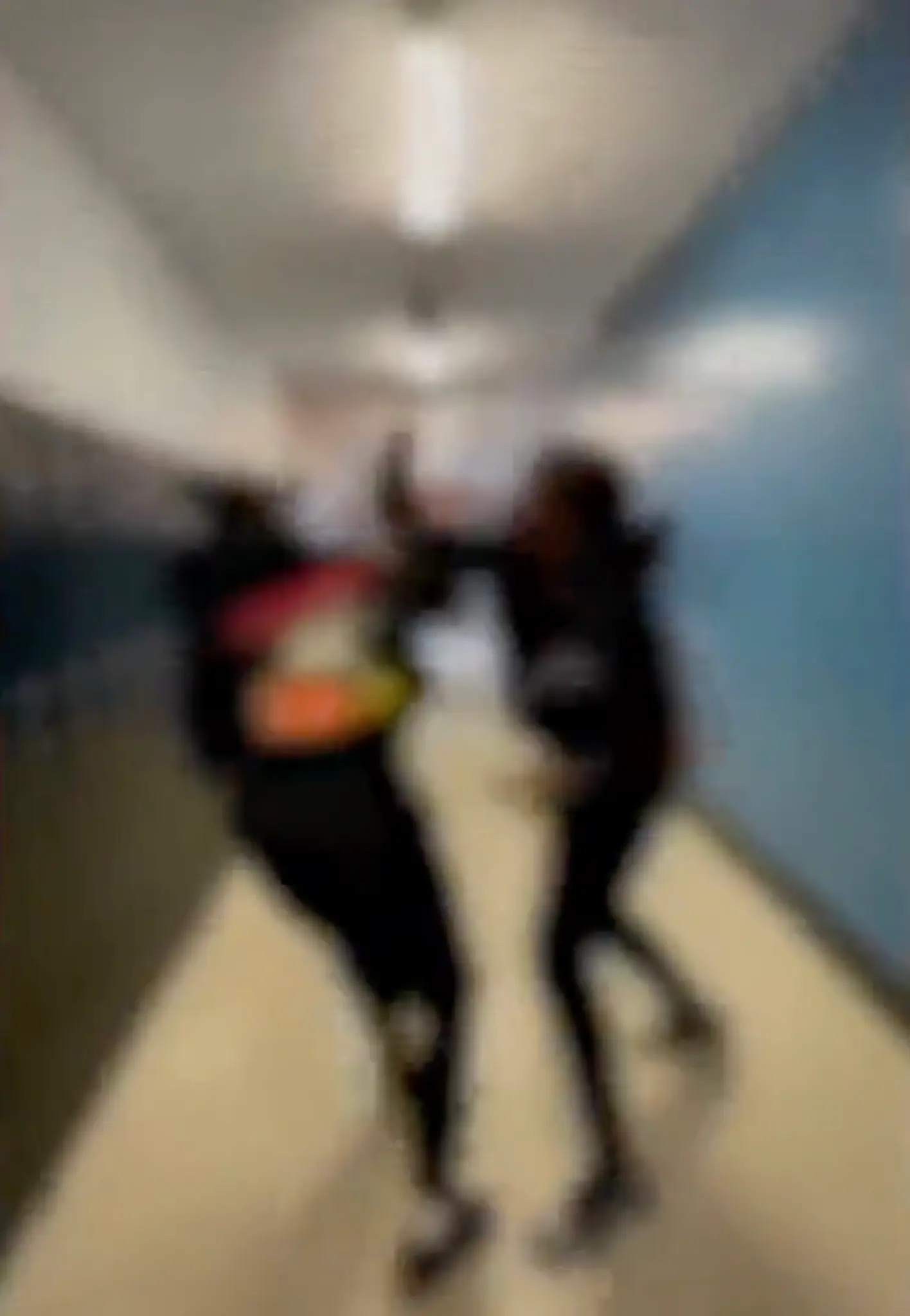 Another teacher filmed the chaotic scene in a video that showed two students raining punches on one another as somebody appears to leap between in an attempt to separate them.