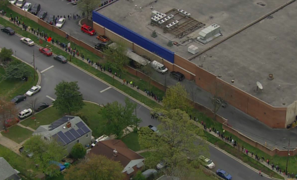 The longest line captured by SkyTrak7 was in Takoma Park, where some people stood in line for up to four hours. Officers also assisted there. According to a manager, 1,500 people received free food after first receiving tickets.