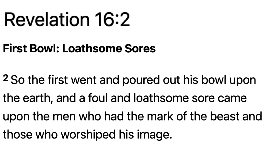 What’s more, another verse says that everyone who gets the MARK will get a disgusting rash!