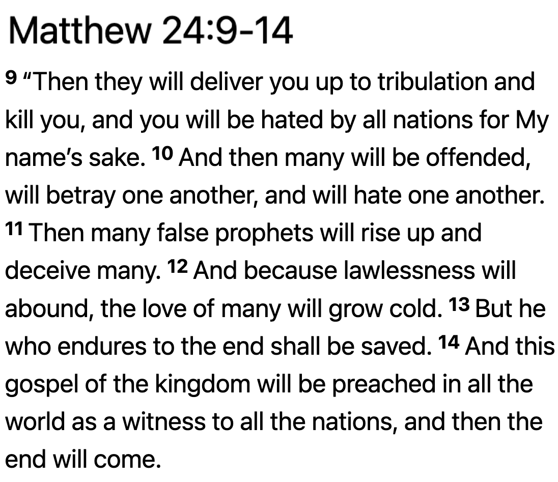Jesus said that if you remain true to him in this time of great confusion, you will be saved. Many, however, will not be saved.