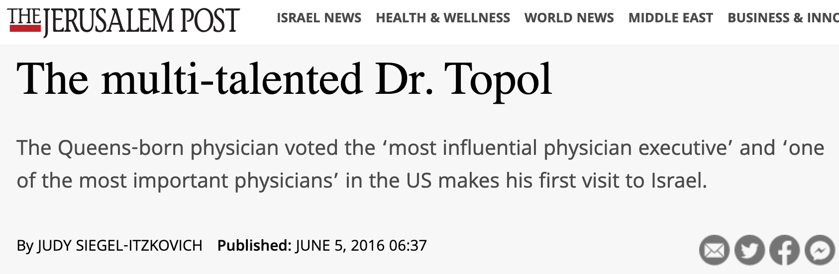 Speaking of Jews – the Dr. Eric Topol promoting this hoax does not have an early life section in his Wikipedia, but he does have a write-up on the Jerusalem Post praising him as a great Jewish genius.