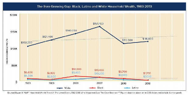 Median Black household wealth is on a path to hit zero by 2053 … [and] median Latino household wealth is projected to hit zero twenty years later, or by 2073.