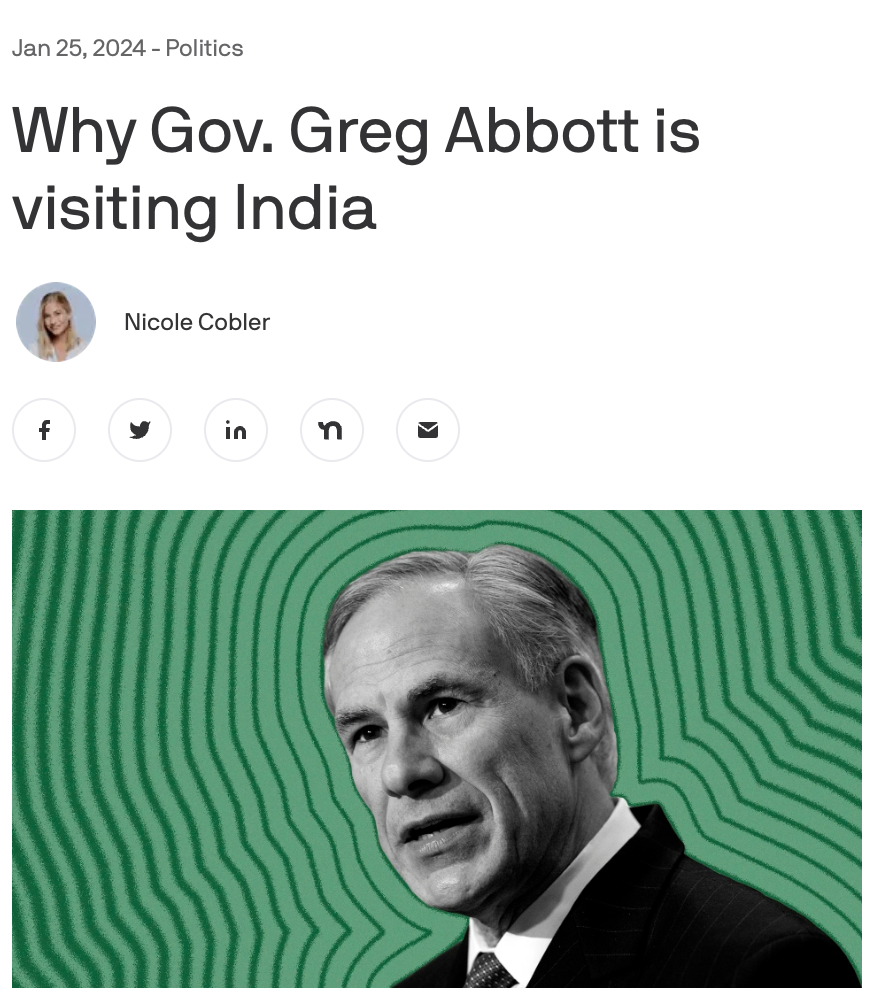 Do you know where Greg Abbott is right now? He’s in India, recruiting “legal” immigrants.