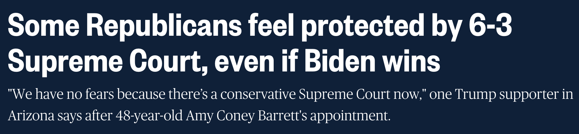 Republican voters fearing a potential Joe Biden presidency are taking some solace in the belief that a newly conservative Supreme Court with Justice Amy Coney Barrett will restrain Democratic ambitions.