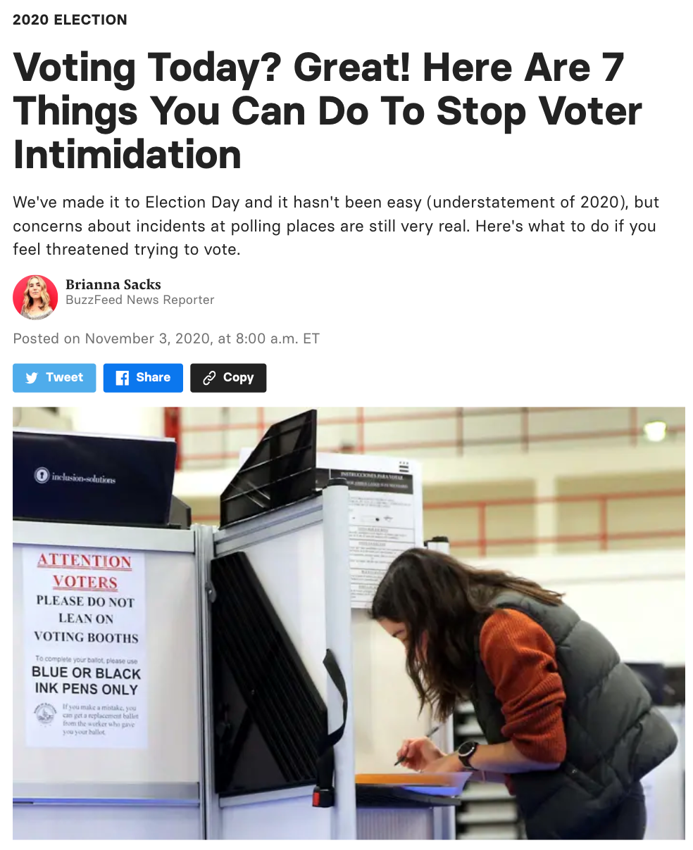 By the way, there is no voter intimidation at the polls, that is actually an insane claim, but when they casually write a listicle about it, it makes it seem that the issue is so well understood that it can just be casually discussed, which makes it seem more real.