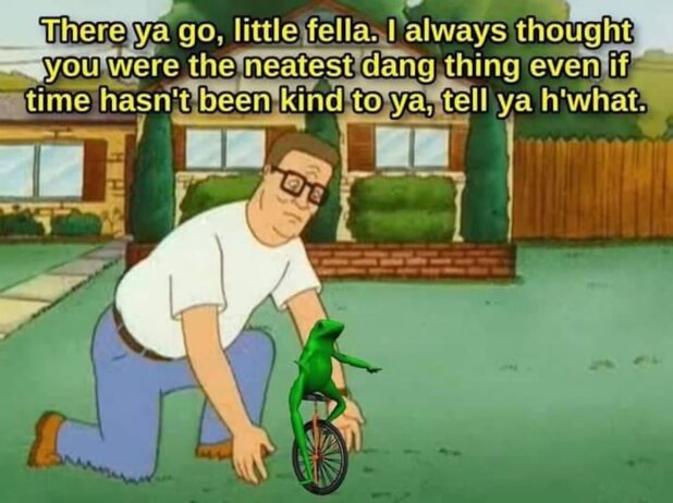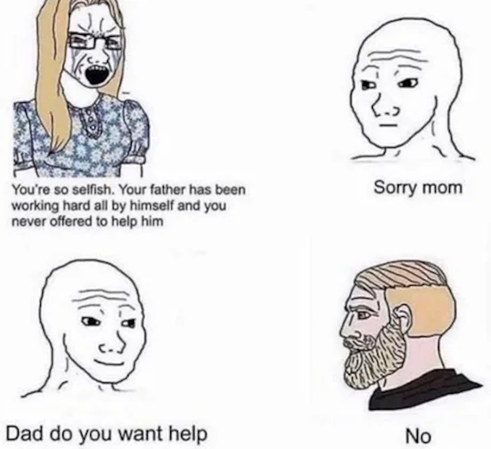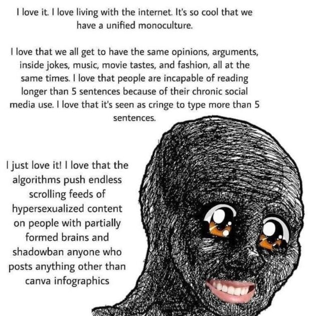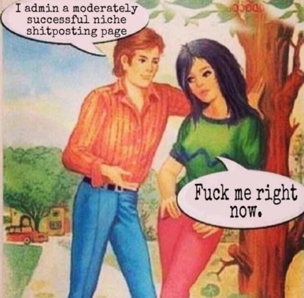 This is what I do now. I don’t write interesting analysis or give advice to young men. I just post dickhead “yes” memes.