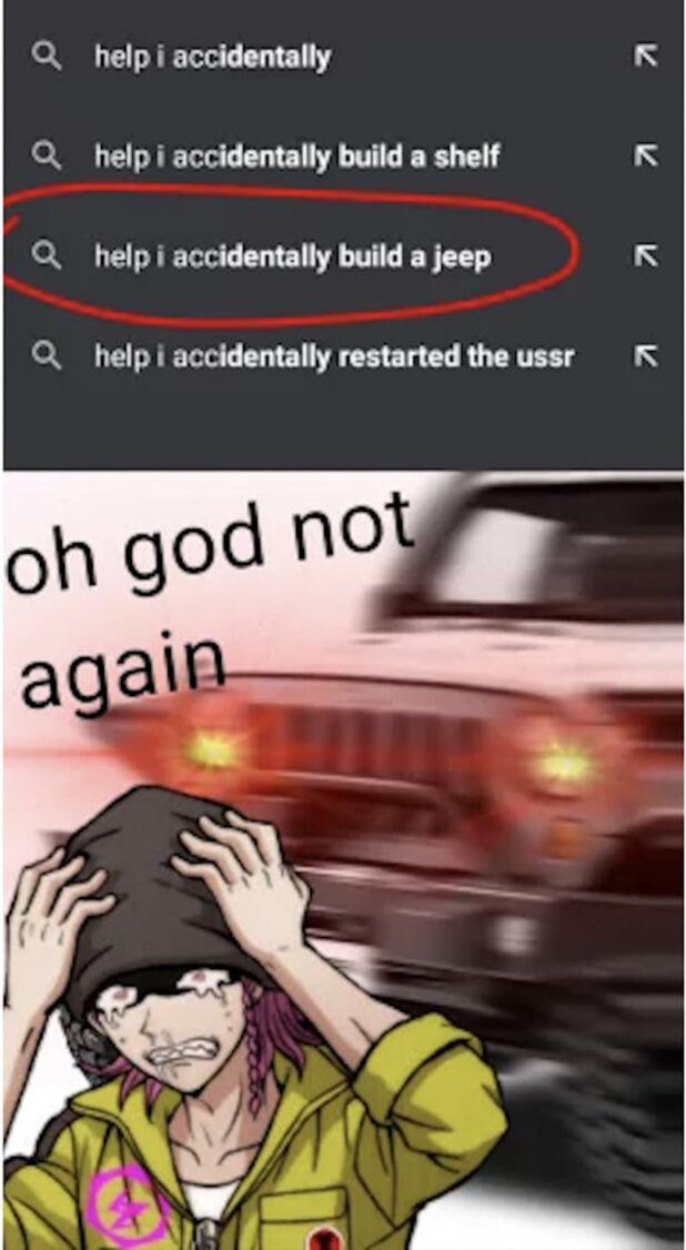 Here is the primo collection (frontloaded with decade-old Jeep memes instead of sloped roof memes, for your mental health).
