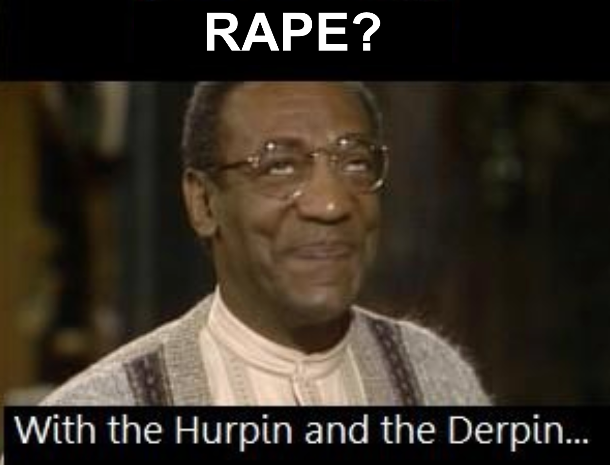 That’s just a lulzy joke – Cosby was innocent (those whores asked him for pills and they weren’t even strong pills), and I personally prefer for women I rape to be WIDE AWAKE.