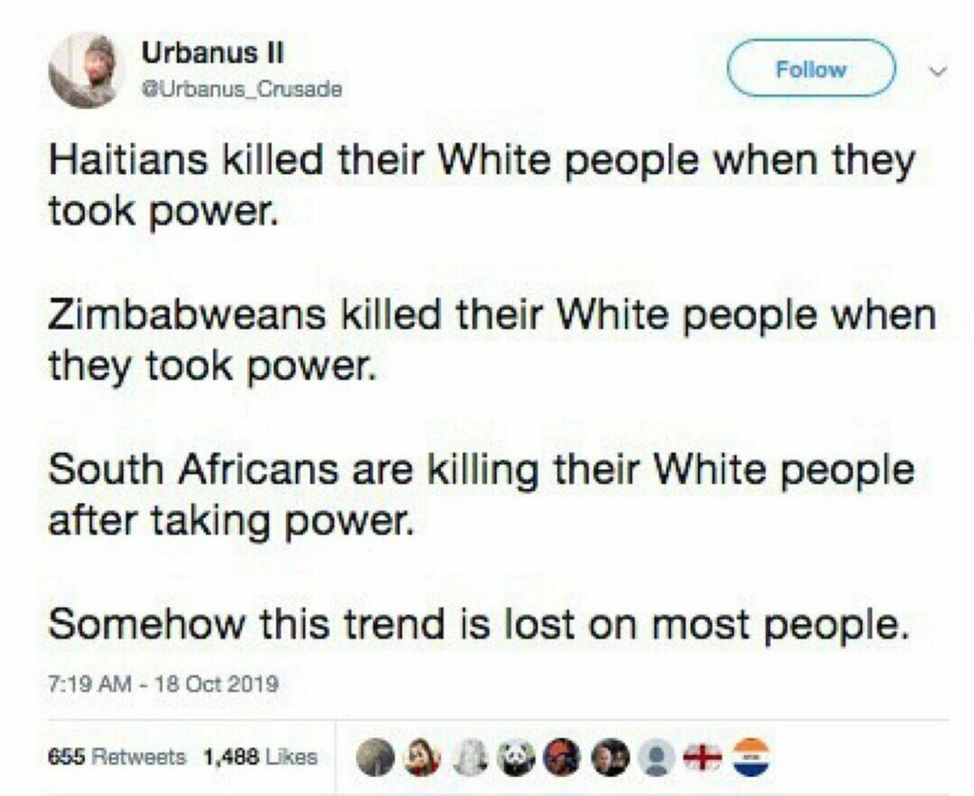 Some of these are old memes, because it’s really hard to find non-racist memes on the internet. A person who makes a meme that’s funny is someone who is creative, and we don’t see a lot of creativity among non-racists. They tend to be conformists who believe everything they’re told by authorities, which makes it difficult for them to create any form of art at all, as their entire consciousness is dependent on being filled up with someone else’s thoughts.