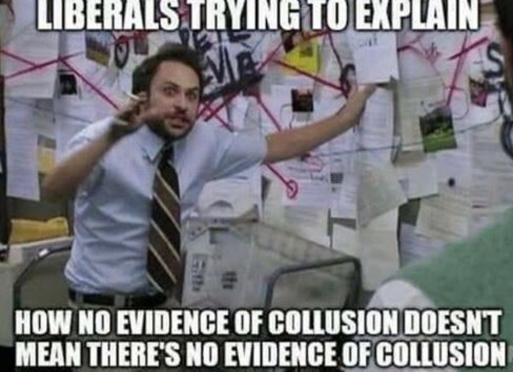 Meanwhile, the Mueller investigation has determined that there is no evidence of a “Russian collusion.”