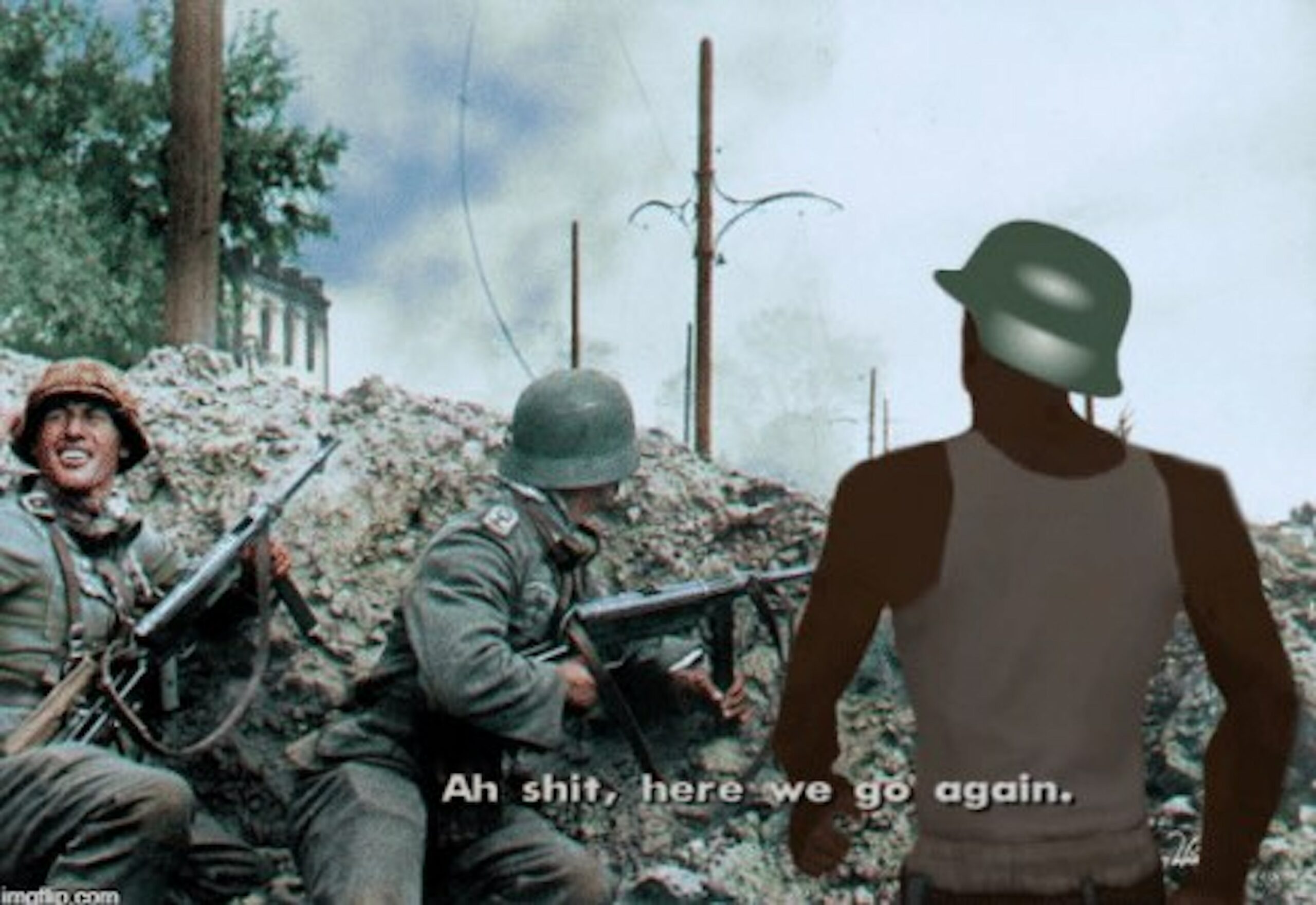Here’s your war memes, with a bit of non-war memes as buffer zones between war memes. Think of them like women and children between the Aryan warrior and the guns of the Russian anti-Aryan.