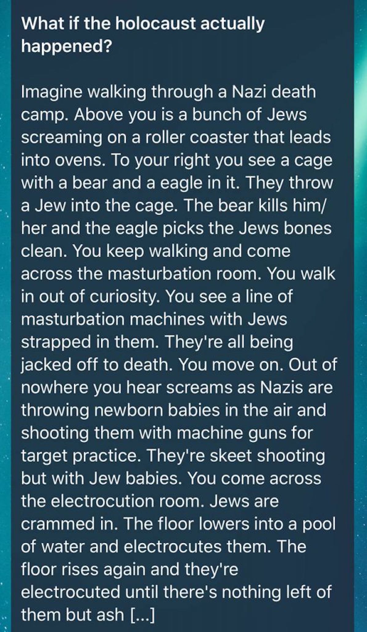 For anyone new here – yes, those are all real claims by Jews about things that happened during the alleged Holocaust.