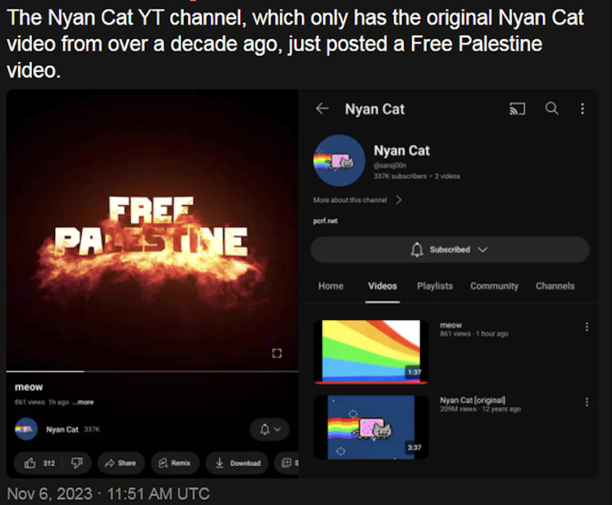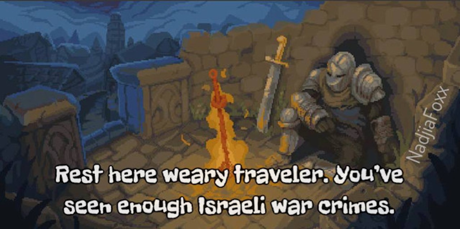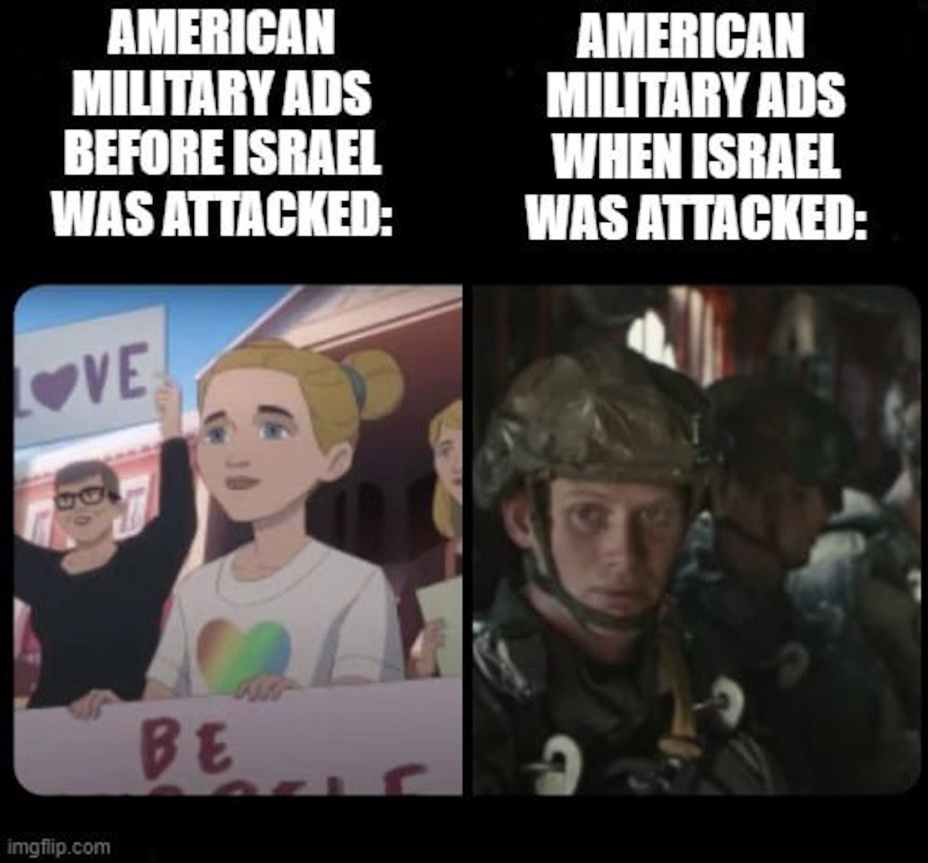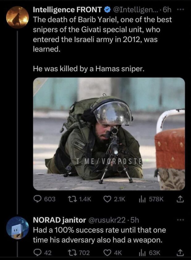 The memes are good. The images of the guy walking down the street, and his face with the shell casing caught by the camera is just fantastic optics.