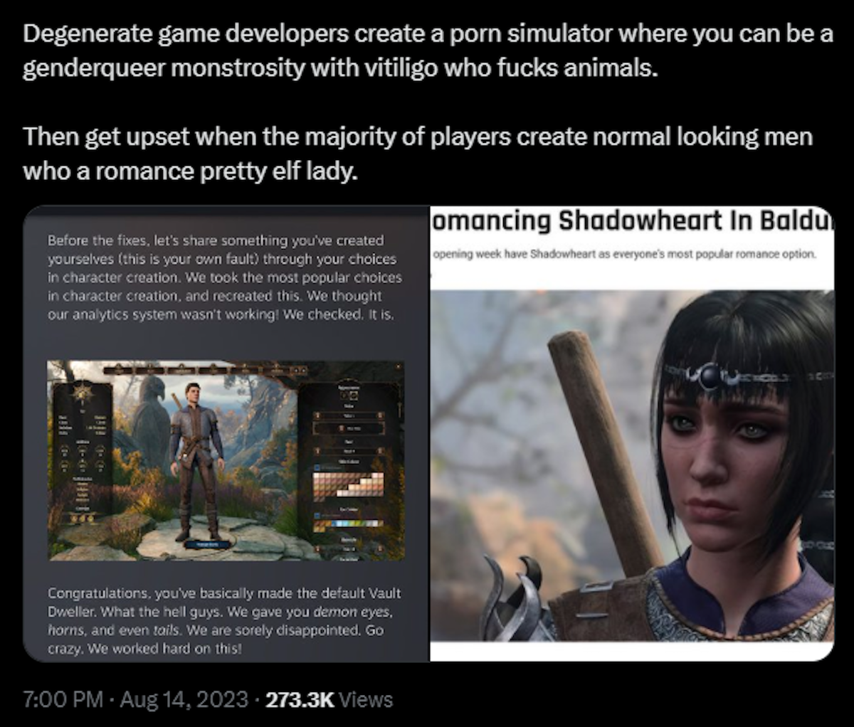 This dude Halsin held me up with his bullshit. I killed this nigga’s whole family and all his friends by triggering a violent France-style refugee uprising and he’s still following me around trying to talk me into his moralfag nonsense.