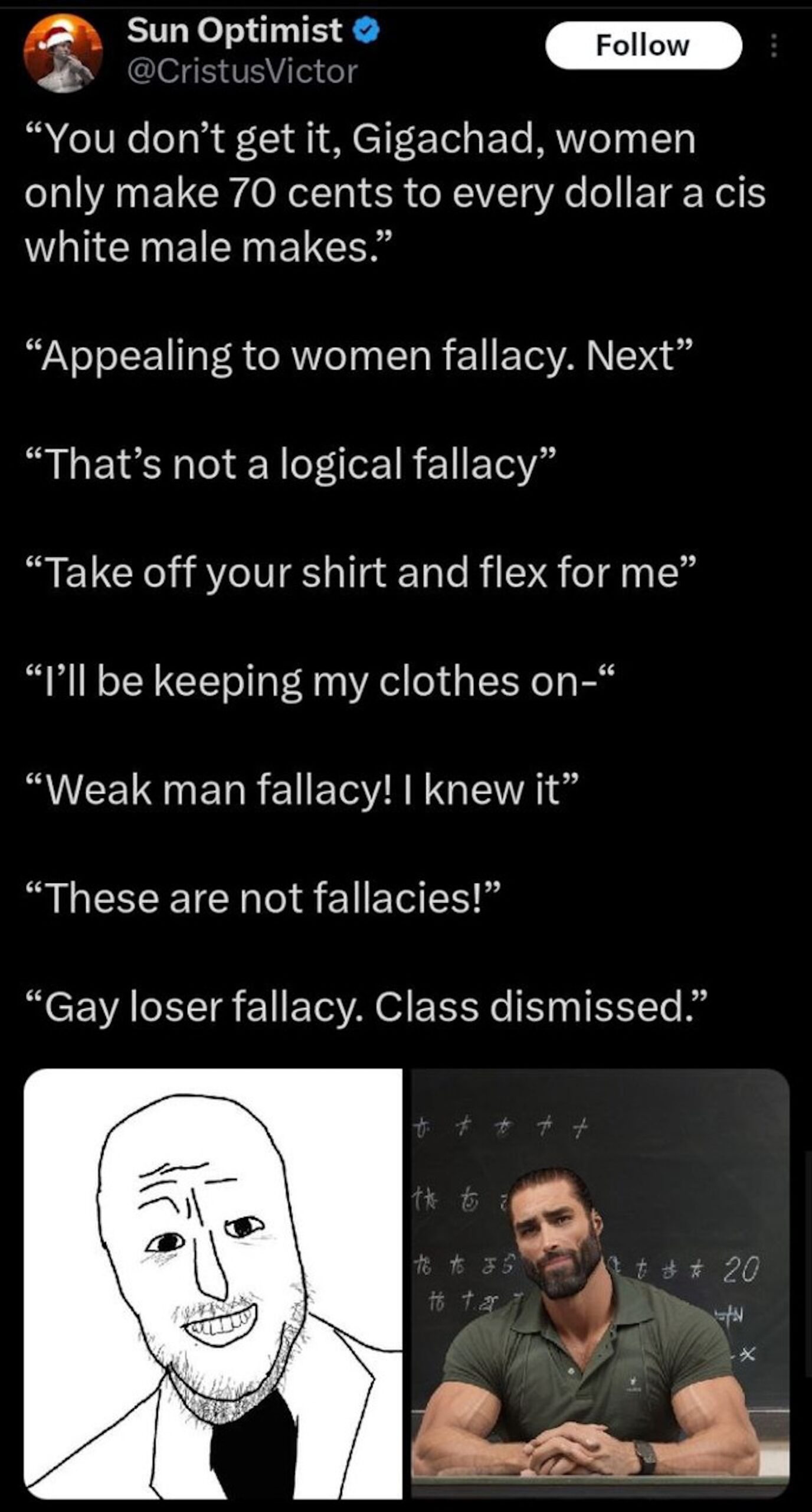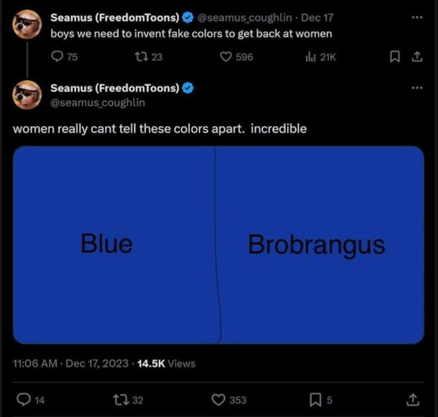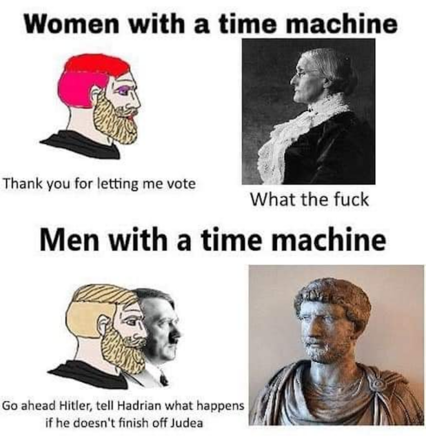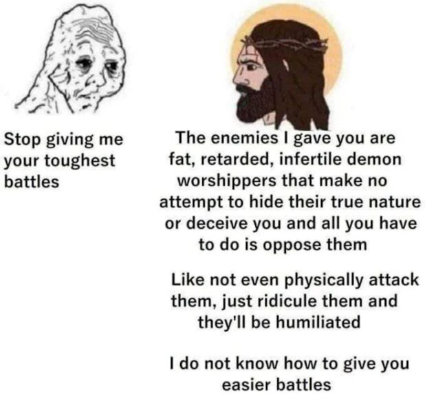 That might be relevant to you, and if so, you need to do some very serious personal work. Probably, that meme deserves its own article. (Also, the Elon Musk-John Gage-Fire Extinguisher-DemonSlayer saga needs an article. I told you people he was gonna get banned. The fact that Elon is too high to read the first paragraph of the Miller Test Wiki or that he bans anyone who criticizes Jews with enough followers after the Israel trip shouldn’t surprise anyone who follows my doom-mongering, which is unfortunately always correct.)
