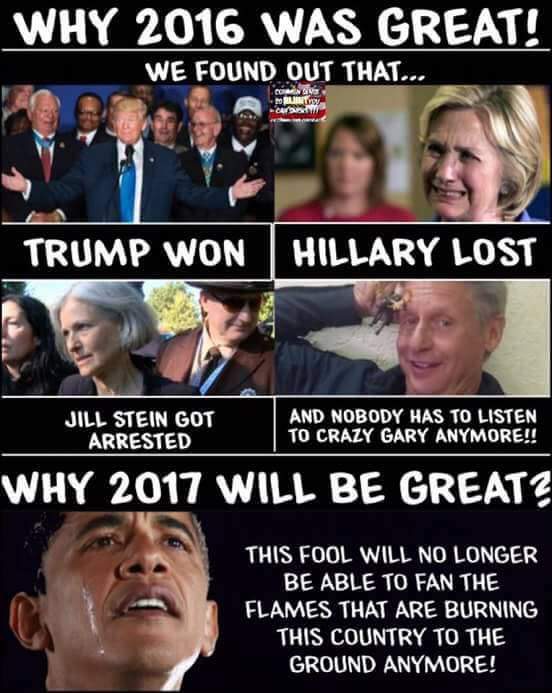What an amazing 2016! Progressive-ism is dead. The lying media’s narrative is falling apart and they are being called out for their filthy lies. Trump has done more for America so far, pre-inauguration, than any sitting president has done in our lifetimes.
