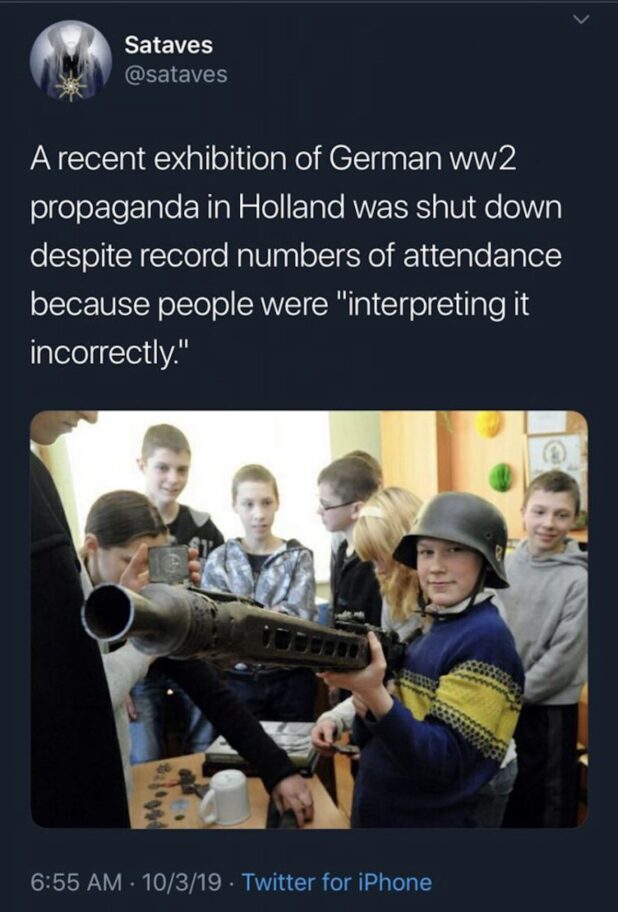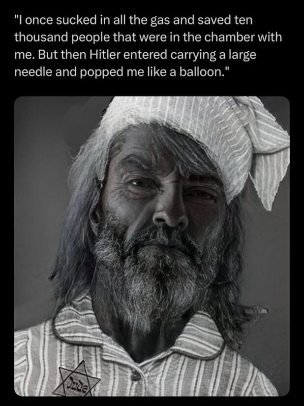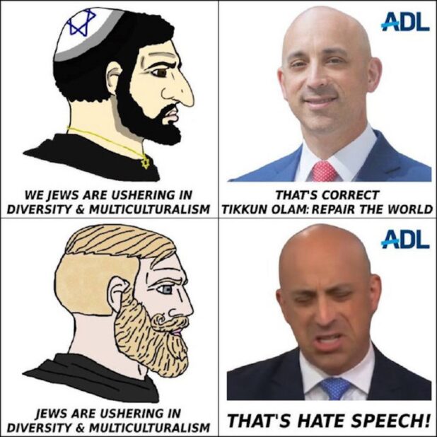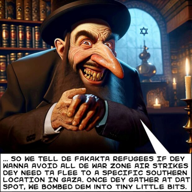 Laughing at things breaks narratives. The Jews have a system to respond to moral outrage over their mass slaughter. They don’t have a response to portraying them as satanic monsters and laughing at the absurdity of a group of people who would systematically bomb hospitals and intentionally mass murder children in front of the whole world for two months straight while claiming to be victims.