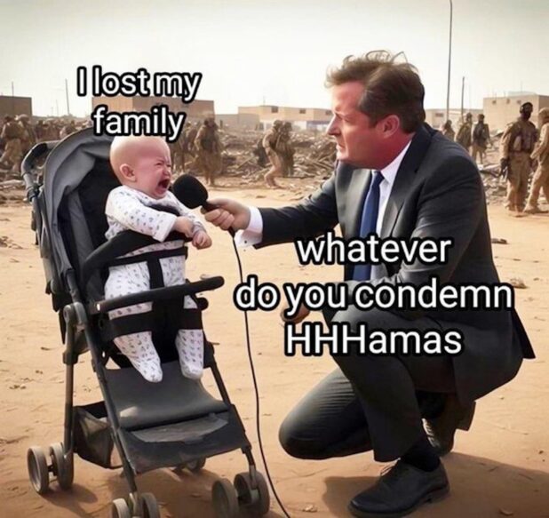 I know. I stand with Palestine, and let’s be real: that means standing with Hamas. Hamas has done nothing indefensible, including on October 7 – and anyway, the Jews let it happen on purpose.