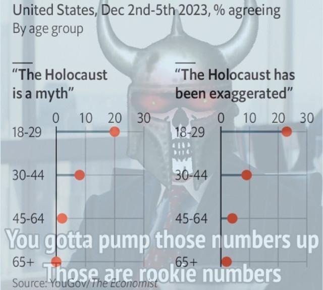 I keep telling you people: this is the first time the Jews have been incapable of gaining sympathy since World War Holocaust. Even the boomers who support the Jews aren’t sad about October 7, they just support killing Arab children because of 911 or whatever. Now is the time to put the pedal to the metal on this Holocaust horseshit. Liberals will listen.