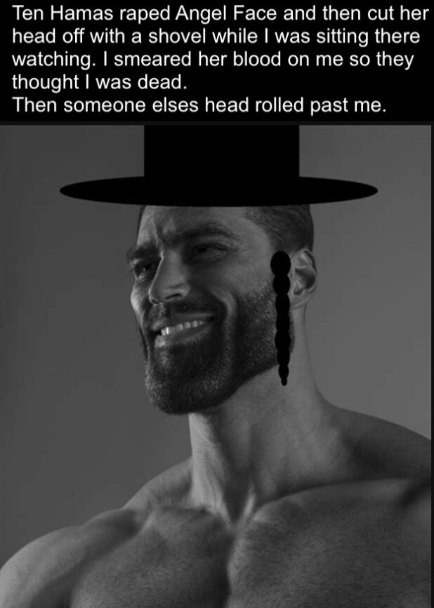 It’s the perfect use of gigachad, showing the absolute audacity of these Jews. You could do it with 40 decapitated babies and Angel Face as well. Wait, should I do that now? It’s already late… but…