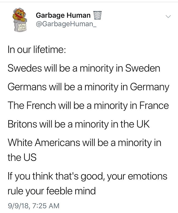But having any more than “small numbers” of them constitutes an existential threat and precedes societal collapse.