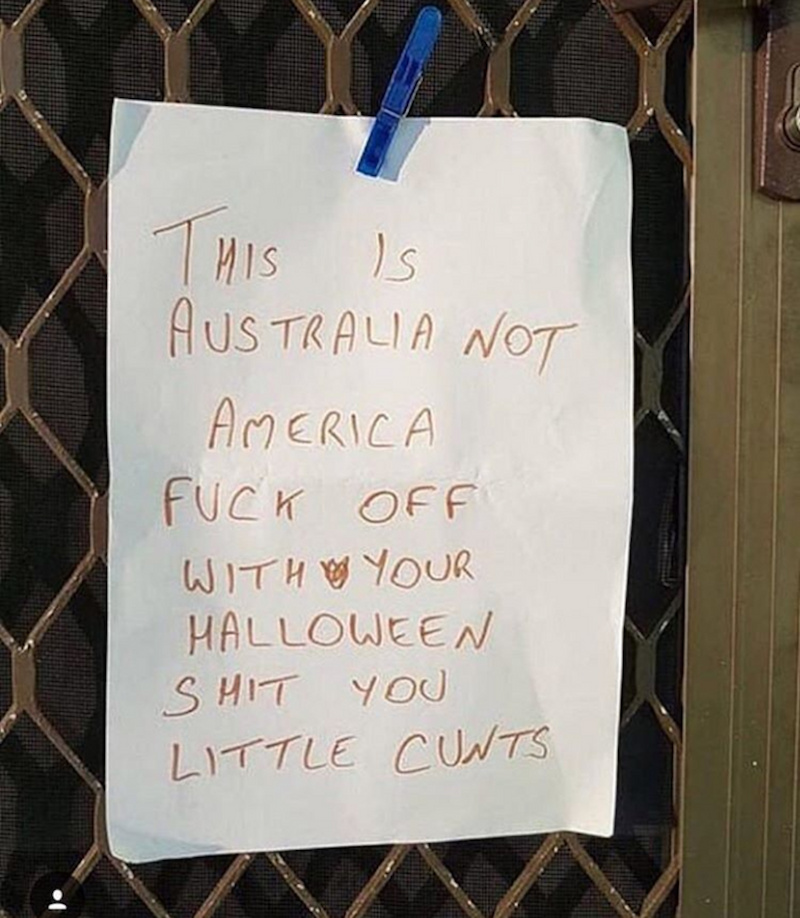 Also, unlike a lot of our holidays, which are shared across the Christian world, Halloween is explicitly American (and yes, the consumerist machine has tried to spread it out across the world in a way that hurts other people’s cultures). So even as a big Halloween guy, I appreciated this Australian’s sign.