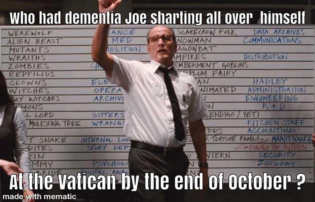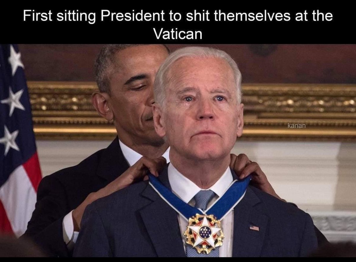 Oh and I didn’t actually even write about it, but at least one blue check account (I think from Italy) said that Joe Biden’s meeting with the “Pope” lasted so long (an unheard of 75 minutes) because he shit his pants and had to be cleaned up.