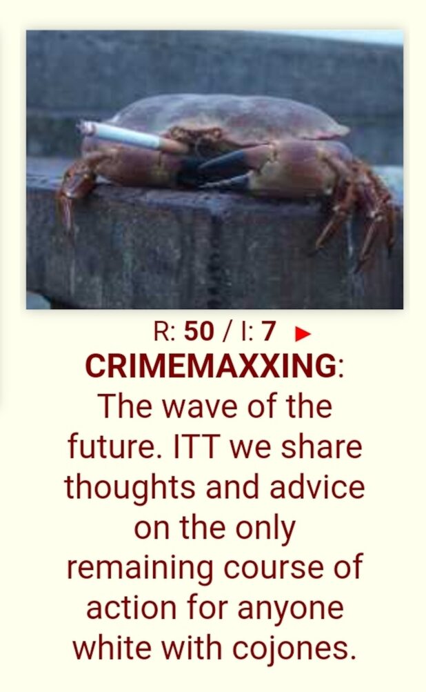 Anyway, I don’t really care about anything anymore other than those two things: a) scaremongering people about how Trump is setting their shit up so president AOC and her gang of kikes can send you to get eaten to death by alligators, and b) elite cheeses.