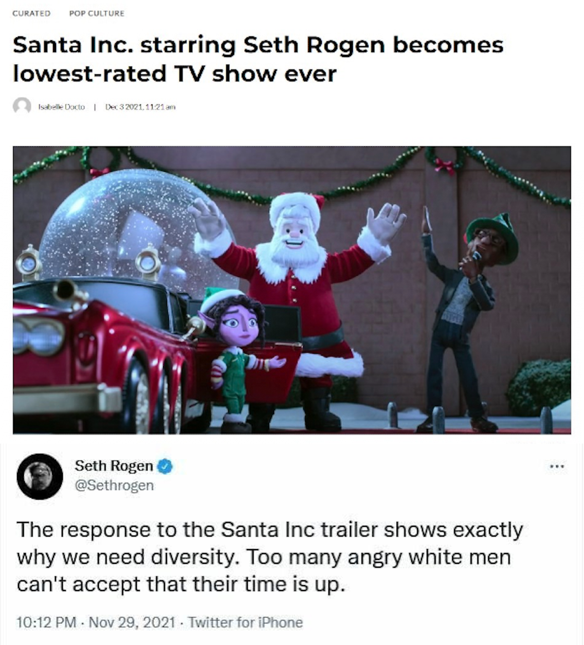 People are watching this Jewish show and going out and burning Christmas trees. Santa Inc is literally virulent hate propaganda intended to inspire real world violence.