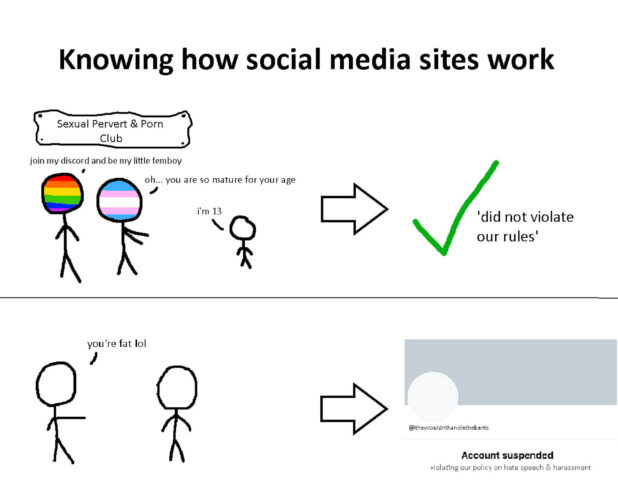 Sometimes, they come back later, but I’ve been given no reason, no nothing. As anyone who was following my Twitter is aware, I was very careful. Not only did I not post the Raelian symbol, I did not use the word “Jew.”