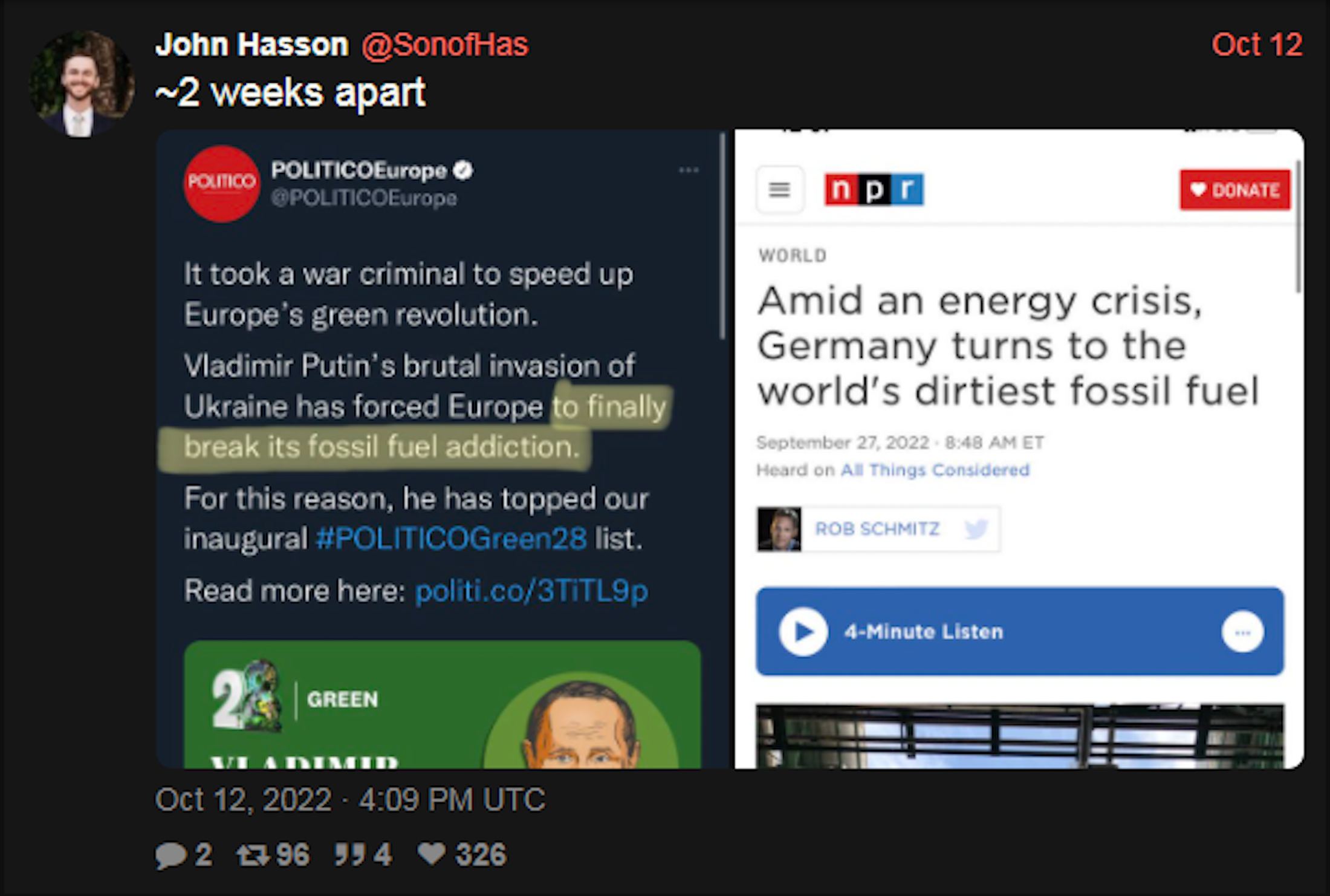Trump is backing him up, Russians are backing him up, the war is coming and we already won.