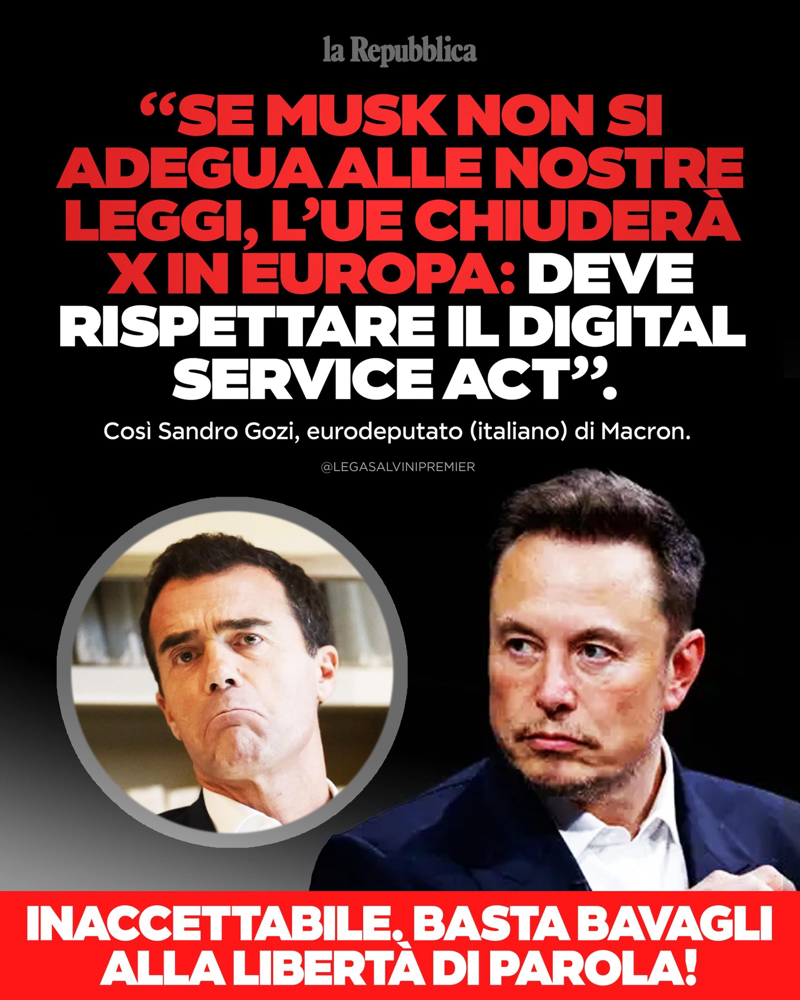 “If Elon Musk does not comply with European rules on digital services, the EU Commission will ask continental operators to block X or, in the most extreme case, will impose a total dismantling of the platform in the territory of the Union,” Gozi added.