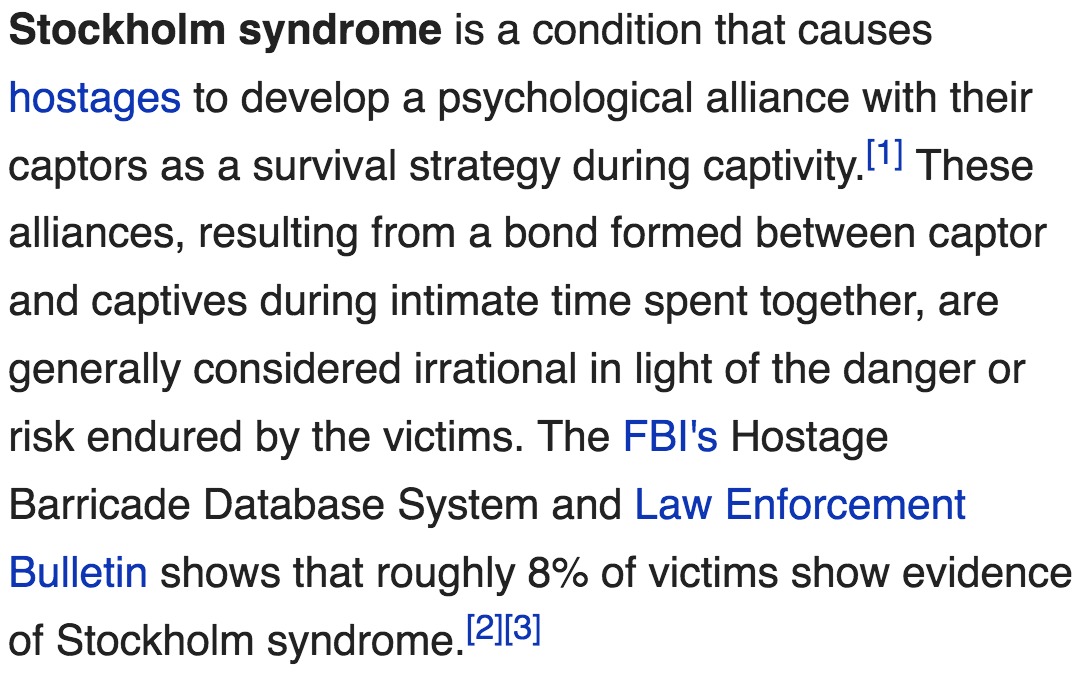 This is what Stockholm Syndrome looks like, folks.