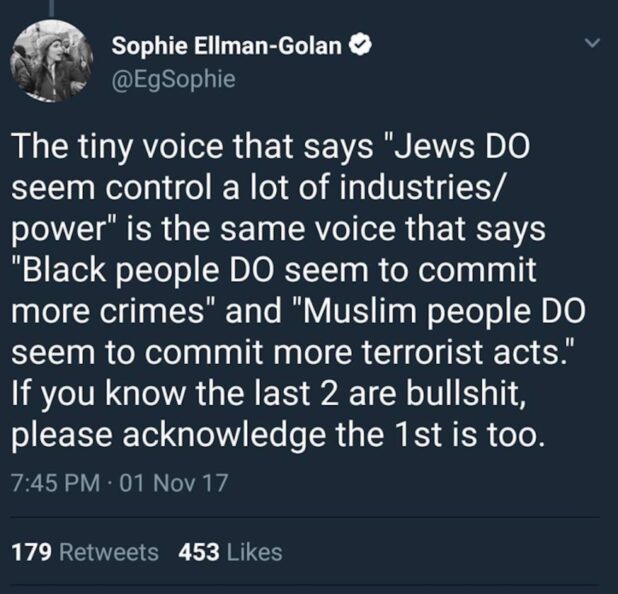 That is a Jew female, attempting to defend Jews by saying that believing Jews have power is as silly as believing blacks commit more crimes. This is what I always tell you about lies being built on other lies. Well, that is a sort of ridiculous example of that phenomenon, which you’re not going to find very often. I mean, imagine if she had said “the people telling you Jews are powerful are the same ones telling you trannies aren’t real women.”