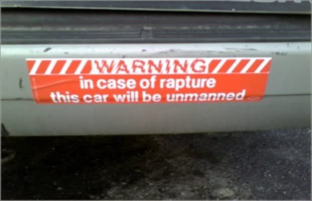 “WARNING: in case of rapture, this car will be unmanned”